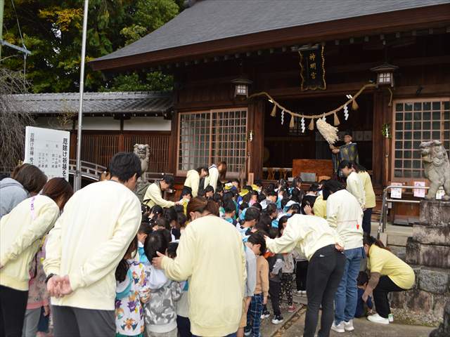 菊組(2歳児)さん〜桜組(年長児)さんのみんなで、東田神明宮にお参りに行ってきました!